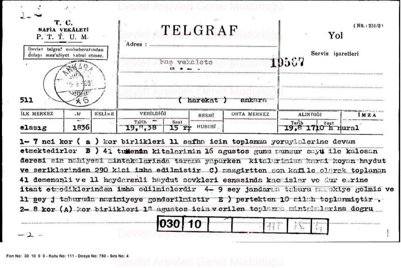– Amasya-Dersim-Sivas-Samsun hattında görevlendirilen Merkez Ordusu komutanlığının Pontos, Koçgiri ve Dersim ahalisine ilişkin tespit ve talimatları/kararları nelerdi?