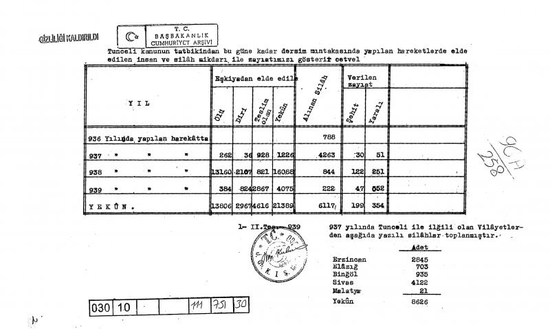 Nitekim dönemin İçişleri Bakanı Faik Öztrak’ın açıkladığı evraka göre, kanlı harekâtın olduğu 1938’de 13.160 Dersimli ve 122 asker-milis öldü ve yakalanan Dersimliler de batı vilayetlerine sürüldü.