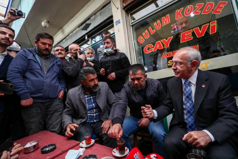 CHP Genel Başkanı Kemal Kılıçdaroğlu, Kars’a düzenlediği gezide, Kaplar Halinde esnafın şikayet ve taleplerini dinliyor / Fotoğraf: Independent Türkçe