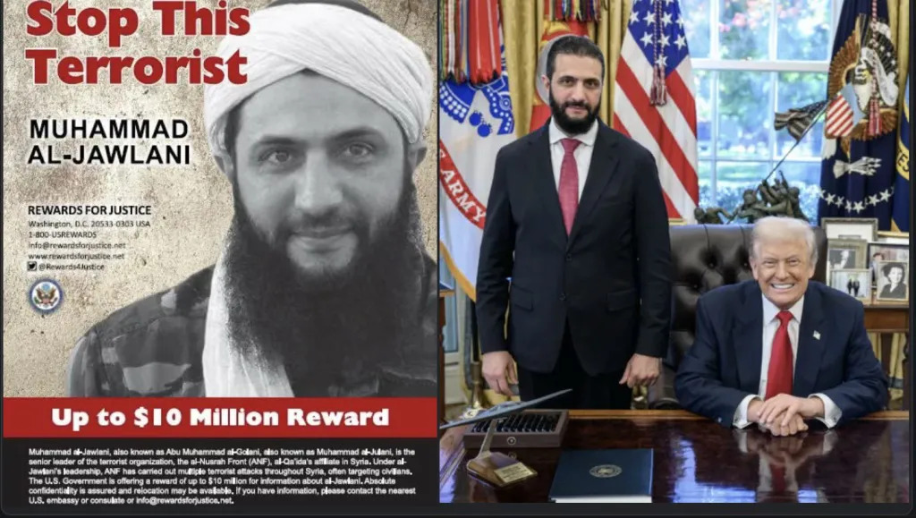 Michel Chossudovsky [Bu makale ilk olarak Global Research’te yayınlanmıştır. Buradan okuyabilirsiniz .] Bu hiç de şakaya gelmez. İşte MAGA Donald Trump ve eski El Kaide lideri Muhammed el-Culani, arka planda ABD bayrağıyla gülümsüyorlar . ” Başkan Trump, iltifat yağdırmanın yanı sıra, eski teröristi de destekledi ve “genç adamın” çok fazla geleceği olduğuna inandığını söyledi . Savaştan harap olmuş Suriye’de ” iyi bir iş çıkarma konusunda gerçek bir şansı ” var . Trump, Suriye’nin …